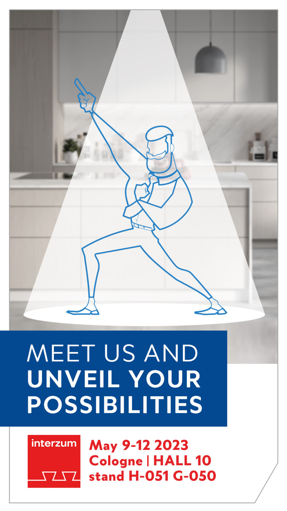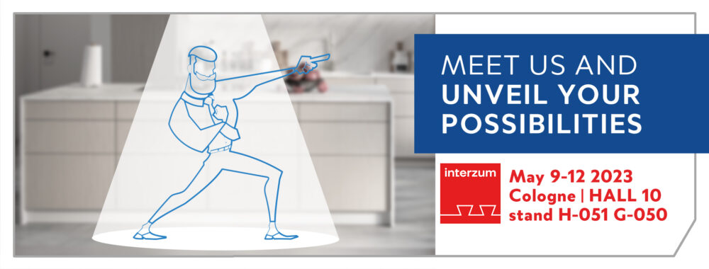 Ne veletrh jsme připravili stánek, jehož plocha byla 300 m2, ve kterém jsme prezentovali naše strategická řešení (mj. systém zásuvek MODERN BOX, AXIS PRO Push to open, MOVIX Cargo nebo šatnu ELITE), novinky (kuličkový plnovýsuv VERSALITE PLUS+, závěs SILENTO PRO) a také širokou nabídku madel a úchytek.