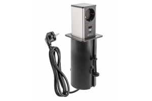 Výsuvná nábytková zásuvka věž, 1x zásuvka schuko, 1xUSB A, 1xUSB, kabel 1,5m, černá, víčko inox