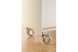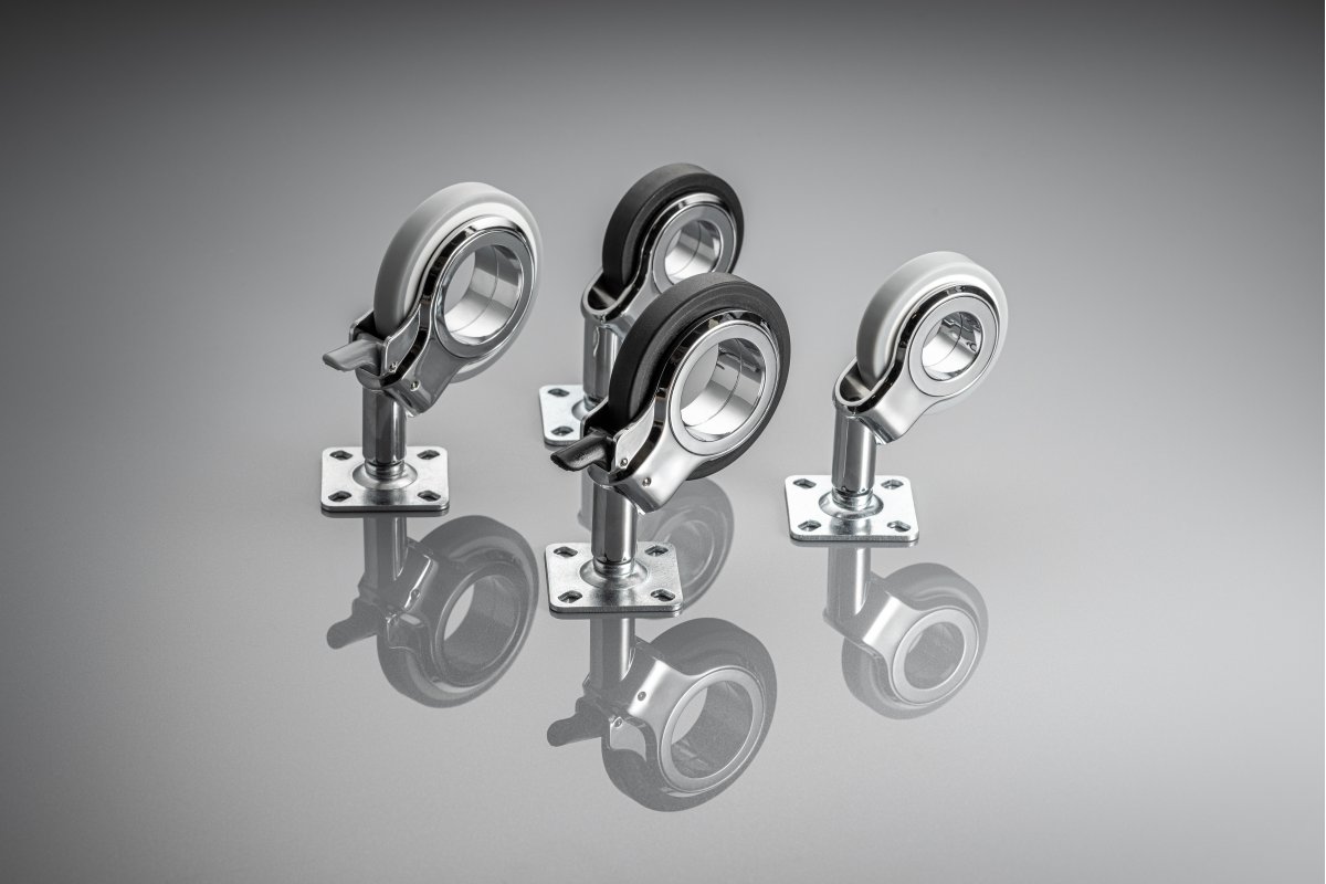Nábytková role GIRA GTV je k dispozici ve dvou průměrech: 60 mm nebo 75 mm a dvou výškách 94 mm nebo 107 mm. Je k dispozici v barevných variantách: chrom s přídavkem černé nebo šedé matné.