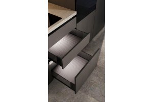 Zásuvka AXIS PRO se skleněnými bočnicemi má dlouhou životnost 60 000 cyklů. Poskytuje plný výsuv v délkách od 300 do 550 mm a mechanismus měkkého zavírání zaručuje tichý provoz a hladké zavírání zásuvky. Díky 3 výškovým variantám se dokonale hodí do vašeho interiéru. Skleněné boky zásuvek AXIS PRO jsou vyrobeny z tvrzeného skla, které je odolné proti poškození a snadno se čistí. Bočnice zásuvky, která je široká pouze 14 mm, umožňuje maximální využití vnitřního prostoru nábytku. Zatížení zásuvky umožňuje umístit do ní až 40 kg různých produktů. Zásuvky AXIS PRO se skleněnými bočnicemi jsou založeny na výsuvech AXIS PRO s měkkým dovíráním. Instalace je snadná díky pohodlnému nastavení zevnitř, nastavení sklonu a horizontálnímu nastavení v rozsahu +- 2 mm. Do zásuvky se vejde celá řada systémů organizace prostoru, vložky do příborů, podložky a třídiče odpadu.