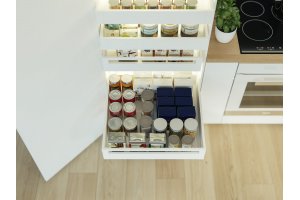 Střední zásuvka Axis Pro má vysokou odolnost certifikovanou pro 60 000 cyklů. Poskytuje plné vysunutí v délkách od 250 do 600 mm a tichý zavírací mechanismus zaručuje tichý provoz a jemné zavírání zásuvky. 5 výškových variant dokonale zapadne do vaší kuchyně a strana zásuvky o šířce pouze 14 mm umožňuje maximální využití vnitřního prostoru nábytku. Zatížení zásuvky umožňuje umístit do ní až 40 kg různých výrobků. Instalace je snadná díky pohodlnému nastavení na vnitřní straně, nastavení náklonu a horizontálnímu nastavení v rozsahu +- 2 mm. Zásuvka je vhodná pro celou řadu systémů pro uspořádání prostoru, vložek do příborů, rohoží a třídičů odpadu.