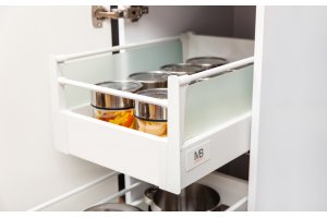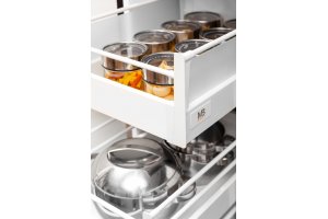 Podélná lišta pro zásuvky Modern Box z oceli, k dispozici ve dvou barevných variantách. Výrobek zvyšuje funkčnost a stabilitu zásuvky.