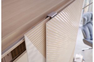Der Positionierer A-SN-POZ wird in den oberen Chassissystemen Overline und Overline+ eingesetzt. Beim Schließen rastet der Wagenvorbau in die Positionierbuchse ein und sorgt so für einen sicheren Stand der Front. Auf diese Weise verhindert der Positionierer ein unbeabsichtigtes Verschieben der Schrankfronten.