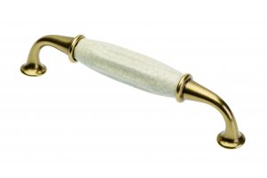 Möbelgriff ALATRI, Bohrlochabstand 128 mm, Zamak und Porzellan, Oberfläche: Altmessing
