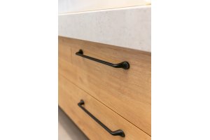 Wenn Sie ein Fan klassischer Formen sind, werden Sie sich sicher in die Griffe der Kollektion FABRICIO verlieben. Sie bewähren sich perfekt als Ergänzung zum klassischen und modernen Stil. Dieser Griff ist in drei Abständen und zwei Farben erhältlich: Schwarz matt und Gold gebürstet, die sich problemlos mit jeder Farbe der Möbelfront kombinieren lassen. Der Griffteil in Form einer minimalistischen Stange verleiht Leichtigkeit im skandinavischen Stil. Die sanft abgerundeten Füße sind ein dekoratives Detail.