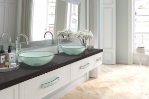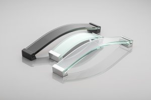 Möbelgriff ROSES, BA 256 mm, Zamak und Glas, Oberfläche: Chrom glänzend, Glasfarbe: transparent
