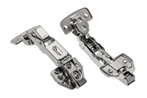 Winkelscharnier 155° mit Dämpfung, Montageplatte H=0 mit Euroschrauben