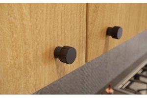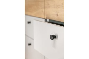 Simple, but at the same time special shape of STRUCTURE handle and knob will perfectly match furniture in your kitchen and bedroom. It will give it a unique character. It is worth stressing that the optimal shape of the handle will increase the comfort of use and it will make it possible to open and close furniture conveniently with a full hand. What distinguishes STRUCTURE collection is knurling, so giving a sculptural, rough form and cavities that create an original pattern. The advantage of knurling is that it prevents objects from slipping. The black finish gives it universality and it is timeless. It blends in perfectly with almost any interior - it will contrast ideally with light colours and harmonize with dark fronts.