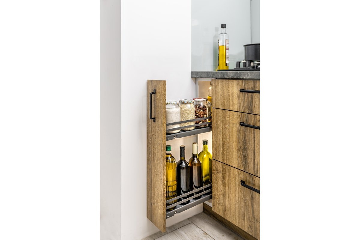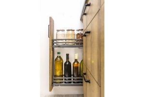 Kitchen furniture equipped with cargo, i.e. a retractable system with shelves, is excellent for storing more products and food supplies. They take up relatively little space, but in themselves they are very capacious. In addition, the flat, double railing and its adjusted height guarantee stability even for tall products. Thanks to cargo, every item has its place, and the kitchen is tidy. A wide range of sizes: 150, 200, 300, 400 and 500 mm makes the system offered by GTV can be adapted to almost any bay.