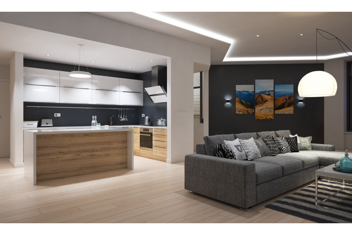 The two-way façade luminaire with its minimalist design and streamlined shape is a perfect solution on both monochrome façades and those finished with decorative stone.