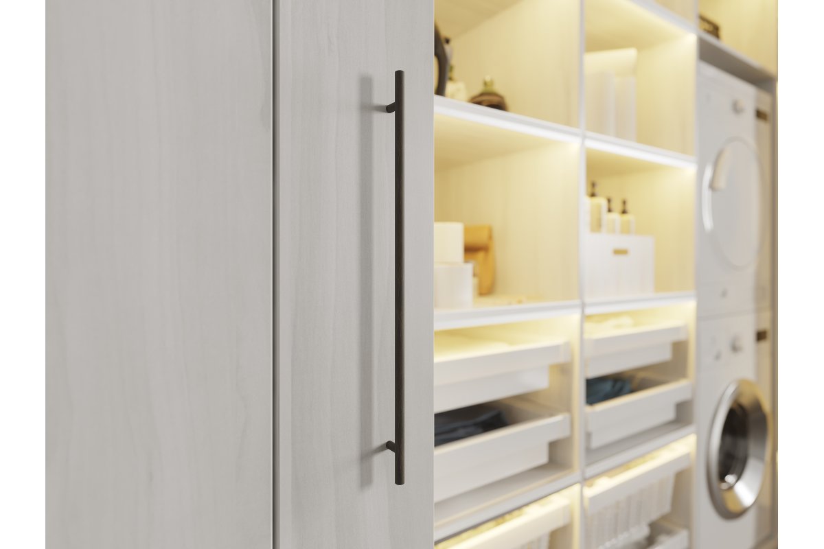 RS railings are a line of handles with a universal form. Its simple and subtle design will work in many rooms. The handles blend well with both modern buildings and wooden fronts, in kitchen interiors, as well as in the bedroom, living room and bathroom. The offer includes five color versions: chrome, satin, aluminum, brushed steel and antique copper and eight spacings from 96 mm to 320 mm. On individual request, spacing is also available: 352, 384, 416, 480, 512, 544, 576, 608, 640, 672, 704, 736, 768, 800 mm.