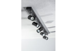 Hay diferentes opciones de tamaño para elegir en la colección: tres puntos, cuatro puntos y seis puntos. En cada una de ellas, las pequeñas luminarias, con base circular, se asientan sobre raíles rectos y alargados. El nivel de iluminación aumenta en proporción al número de puntos de luz en el carril. Además, hay dos opciones de color disponibles: blanco sutil y negro clásico. Gracias a esta fórmula, las luminarias de techo Veneto permiten crear un concepto coherente, por ejemplo en la cocina, el comedor y el salón, utilizando diferentes tamaños de lámparas de la misma línea para la disposición.
