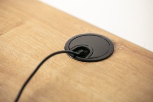 El paso por cable LBF permite el cableado conveniente y seguro de una computadora y otros dispositivos por medio de encimeras y otras superficies;
