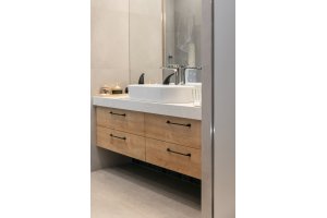 – El tirador en forma de barra minimalista aporta ligereza escandinava;