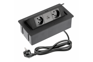 Prise pour meuble SOFT 2x prise avec mise à la terre, USB A+C, câble d’alimentation avec prise, noir