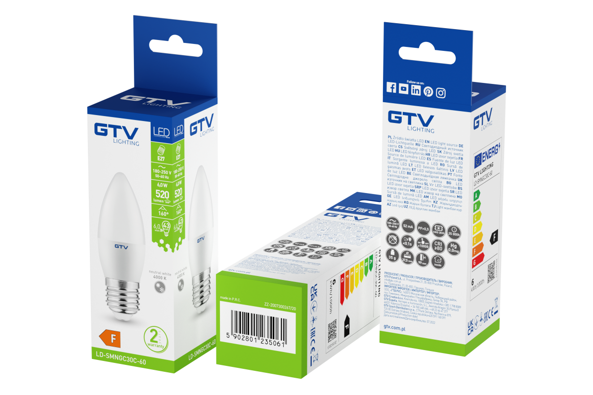 SOURCE D’ECLAIRAGE LED, C30, SMD 2835, 4000K, E27, 6W, AC220-240V, angle d’eclairage 160°, 470 lm, 52 mA