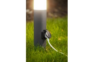 Le montant est également équipé d'une prise shuko d'une charge maximale de 3 000 W, à laquelle peut être raccordée une station de charge pour un robot de tonte, par exemple.