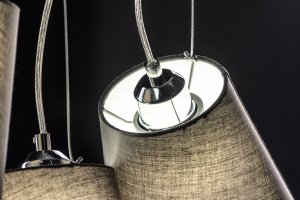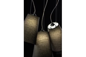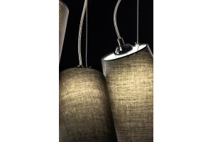 - La collection KASEL comprend trois suspensions : deux lampes ordinaires d’un diamètre de 40 cm et 60 cm et une triple avec abat-jour d’un diamètre de 46 cm chacune.