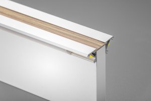 dispose d’un espace spécialement conçu, qui doit être rempli d’une bordure dans la couleur du meuble sur lequel le profilé est monté. Cela vous permet de masquer visuellement un profil aussi grand.