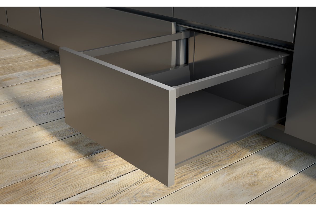 Le produit est applicable aux tiroirs à façade très haute, par exemple dans les tiroirs sous l’évier destinés au tri des déchets. Avec l’utilisation de rails longitudinaux supplémentaires, il permet d’élever la paroi arrière à n’importe quelle hauteur souhaitée par l’utilisateur pour assurer la rigidité de la structure au plus haut niveau.