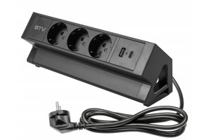 Basco utičnica za namještaj, 3 x Schuko utičnica, USB A+C, kabel od 1,5 m, crna s montažom