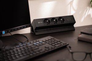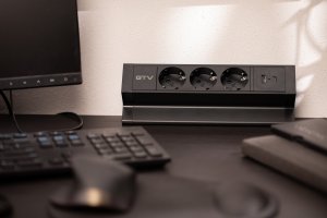 Utičnica za namještaj BASCO praktično je rješenje za stolove i stolove kod kuće i na poslu. Olakšava korištenje prostora, a njegov univerzalni dizajn uklapa se u mnoge aranžmane. Utičnica se montira na rub ploče stola debljine od 5 do 36 mm – bez potrebe za bušenjem. Opremljen s tri Schuko utičnice i USB A i C priključcima, omogućuje vam istovremeno povezivanje različitih uređaja. Ima kabel od 1,5 m i dostupan je u crnoj boji, što ga čini diskretnim uklapanjem u većinu radnih prostora.