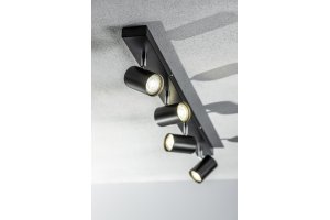 Kolekcija nudi različite varijante veličine na izbor: tri točke, četiri točke i šest točaka. U svakom od njih, mali priključci, koji se temelje na postolju kotača, montirani su na ravne, uzdužne tračnice. Razina osvjetljenja raste proporcionalno broju svjetlećih točaka na šini. Osim toga, postoje dvije opcije boja - suptilna bijela i klasična crna. Zahvaljujući ovoj formuli, stropna svjetiljka Veneto omogućuje stvaranje koherentnog koncepta, na primjer u kuhinji, blagovaonici i dnevnoj sobi, koristeći različite veličine svjetiljki iz iste linije za raspored.