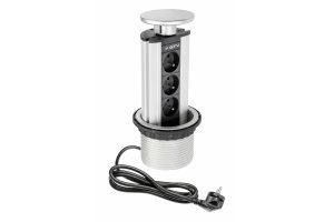 Kompaktowa konstrukcja idealnie sprawdzi się w przypadku braku miejsca na standardowy rozgałęziacz. Wszechstronne zastosowanie pozwala na instalację np. w blacie biurka, blacie kuchennym czy stole warsztatowym. Przedłużacz pozwala zachować ład i porządek w każdej przestrzeni. Sama instalacja w blacie jest banalnie prosta – wystarczy nawiercić otwór o średnicy 100 mm, włożyć przedłużacz i unieruchomić go przy pomocy plastikowego pierścienia. Produkt dostarczany jest wraz z przewodem zasilającym o długości 1,5 metra. Podłużno-okrągły kształt oraz połączenie ze srebrnym kolorem sprawia, że gniazdko wygląda nowocześnie oraz stylowo. Przedłużacz wykonany z wysokogatunkowego tworzywa sztucznego oraz aluminium, które zapewnia długą trwałość. Maksymalna moc wyjściowa wynosi 3600 W. Przedłużacz zajmuje niewiele miejsca i zapewnia większy porządek na powierzchni roboczej.