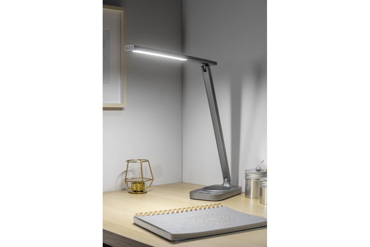 Lampka biurkowa BRESSI, LED, 8W, 450lm, 3-CCT, AC220-240V, IP20, wireless charging, USB, szary