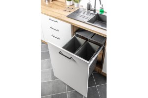 Dzięki segregatorowi PRACTI ECO 600, segregacja stanie się łatwiejsza oraz umożliwi ponowne wykorzystanie wielu odpadów, w celu wyprodukowania nowych produktów bądź nadania zużytym drugiego życia. Produkt wykonany jest z wysokiej jakości tworzywa z mocowaniem do dna korpusu i frontu szafki, które zapewnia sztywność i stabilizację kosza. Jednolity antracytowy kolor idealnie wkomponuje się w każde wnętrze, a mechanizm spowalniający zapewni cichą pracę oraz delikatne zamykanie. Zamontowane kosze na wysuwanym stelażu gwarantują wygodne użytkowanie oraz pasują do większości szafek kuchennych.