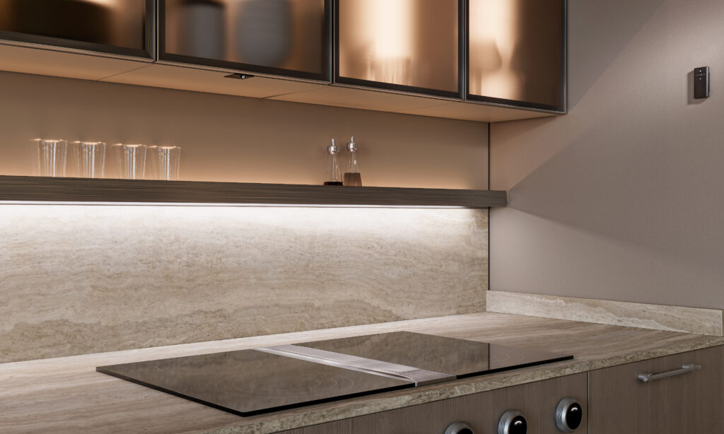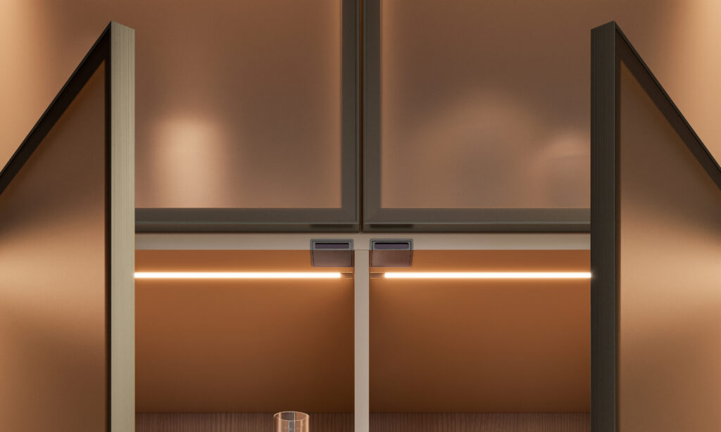 Elegancka, czarna obudowa w formie magnetycznej kasetki pozwala dyskretnie ukryć mechanizm. SKY to idealne rozwiązanie do szaf, garderób, zabudowy kuchennej i mebli łazienkowych. Zapewnia wygodę użytkowania bez widocznych przewodów i skomplikowanych instalacji. Dzięki łatwej konfiguracji możemy dowolnie parować włączniki z oprawami i taśmami LED. Włączniki harmonijnie licują z powierzchnią mebli, nie zabierają miejsca i pozostają niemal niewidoczne – widoczny jest tylko efekt: idealnie dobrane światło.