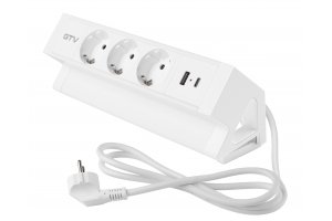 Gniazdo meblowe Basco, 3 x gniazdo schuko, USB A+C, kabel 1,5m, białe z mocowaniem