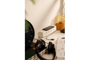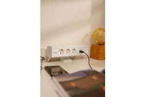 Gniazdo meblowe NICO to funkcjonalne rozwiązanie do biurek i blatów roboczych, umożliwiające jednoczesne podłączenie trzech urządzeń. Posiada trzy gniazda typu schuko. Wyposażone w porty USB A i C, pozwala na wygodne ładowanie smartfonów czy tabletów bez dodatkowych ładowarek. Gniazdo Nico montowane jest na wysięgniku i pasuje do blatów o grubości do 40 mm. Nie wymaga wiercenia. Stabilna instalacja oraz przewód zasilający o długości 1,5 m zapewniają elastyczność w aranżacji. Kolor biały, ale dostępny również w kolorze czarnym.