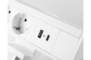 Gniazdo meblowe Nico, 3 x gniazdo schuko, USB A+C, kabel 1,5m, białe z mocowaniem