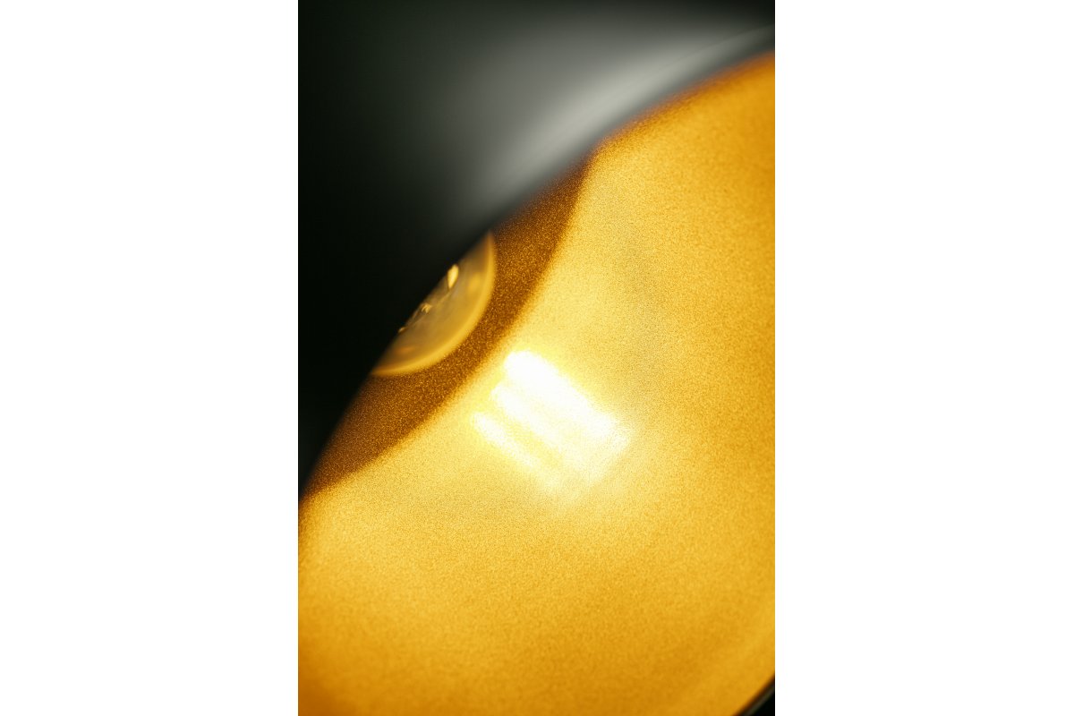 - Złote wykończenie wnętrza klosza ociepla światło padające z lampy