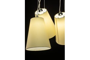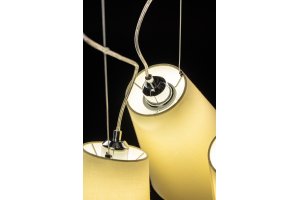 - Kolekcja KASEL zawiera trzy lampy wiszące: dwie zwykłe o średnicy abażura 40 cm i 60 cm oraz potrójną z abażurami o średnicy 46 cm każdy.