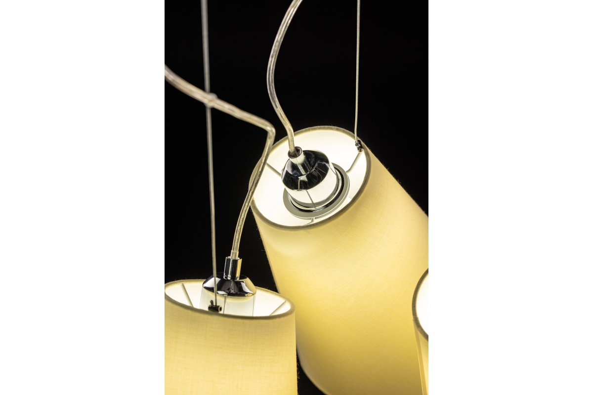 Lampa KASEL wisząca potrójna to elegancki wybór dla tych, którzy cenią sobie prostotę i funkcjonalność. Trzy abażury o średnicy 46 cm każdy, zapewnią równomiernie rozproszone światło, tworząc przytulną atmosferę w każdym pomieszczeniu. Taki model świetnie sprawdzi się zarówno w salonie, jadalni, jak i sypialni.