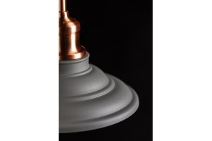 Lampa LORET to bardzo udane połączenie nowoczesnego spojrzenia na świat z industrialnym wzornictwem z końca XX wieku. Szary klosz o średnicy niemal 21 cm z miedzianym mocowaniem, sprawdzi się jako oświetlenie w korytarzach, kuchniach i salonach. Można go także użyć do wydzielania stref w domu.