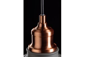 Dzięki swojej kolorystyce lampa jest nietuzinkowa, przyciąga wzrok i nadaje wnętrzom wyjątkowego charakteru. Ponadczasowe połączenie szarości z miedzią z powodzeniem może być stosowane w pomieszczeniach ze ścianami z czerwonej cegły bądź surowego betonu.