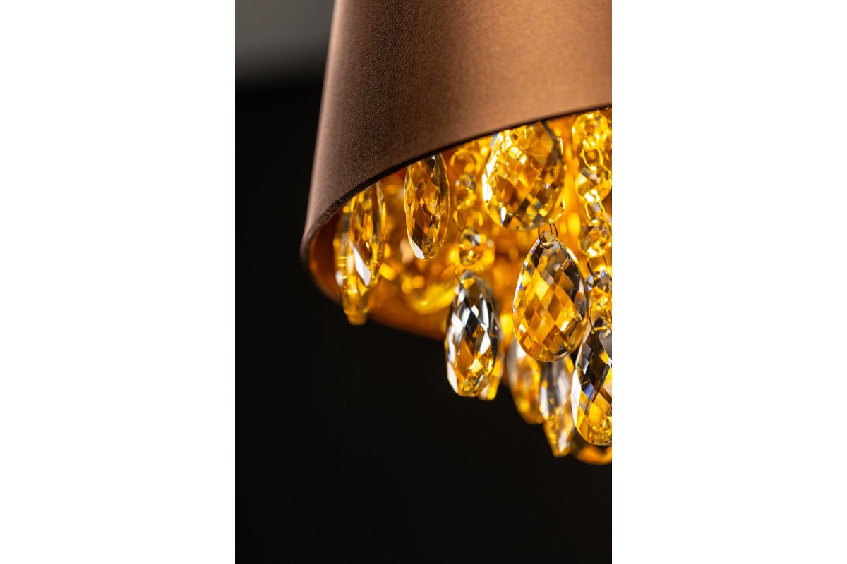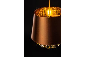 Lampa wisząca NESTO to prawdziwa kwintesencja stylu glamour. Dostępna w trzech wersjach kolorystycznych: czarno/złotej, kremowej oraz brązowej, umożliwia dopasowanie do różnorodnych wnętrz. Jej subtelny kształt to idealne dopełnienie każdego pomieszczenia, lampa NESTO dodaje mu wytworności i prestiżu. Wykorzystanie kryształków zapewnia pięknie odbijające się refleksy, które dodają lampie wyjątkowego blasku. Lampa wisząca NESTO jest idealna do zastosowania w salonach czy sypialniach, zapewniając równomierne i eleganckie oświetlenie.