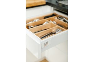 - zróżnicowany wachlarz rozwiązań w zakresie organizacji wewnętrznej przestrzeni szuflady (relingi poprzeczne, listwy poprzeczne, przegródki), wkładów na sztućce CUSTOMI czy AXISPACE oraz segregatorów do odpadów;