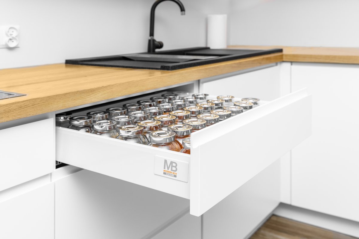 - cichy domyk – mechanizm nie pozwala na głośne zamknięcie szuflady, zostaje ona cicho domknięta;