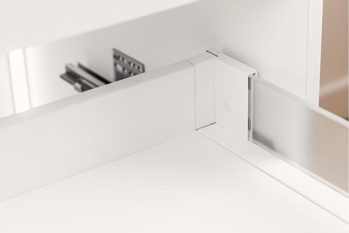 – Prosta forma boku o szerokości zaledwie 14 mm pozwala na maksymalne wykorzystanie przestrzeni wewnętrznej szuflady;