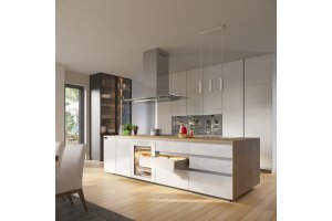 Тенденция к минималистичному стилю в интерьере , который не перегружает и позволяет нам восстановить равновесие, продолжается уже много сезонов. Чтобы удовлетворить растущий спрос, мы создали систему VELLO, которая позволит вам построить кухню без ручек. VELLO представляет собой набор горизонтальных и вертикальных профилей. Одним из них является горизонтальный L-образный профиль, монтируемый непосредственно под кухонной столешницей. Очень важной функциональной особенностью L-профилей является возможность подсветки внутри верхних ящиков и шкафов под профилем. В профиле L мы рекомендуем использовать светодиодные ленты шириной 5 мм или 8 мм из предложения GTV. При использовании ленты в профиле, необходимо закрыть профиль крышкой молочного цвета PA-OSMLGLAXMIC3M-00.