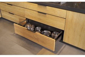 Продольный релинг предназначены для монтажа в выдвижных ящиках Modern Box Pro. Они позволяют поднять ящик, подтянуть фасад и срегулировать его наклон. Релинги используются в ящиках с высотами B, C, D.