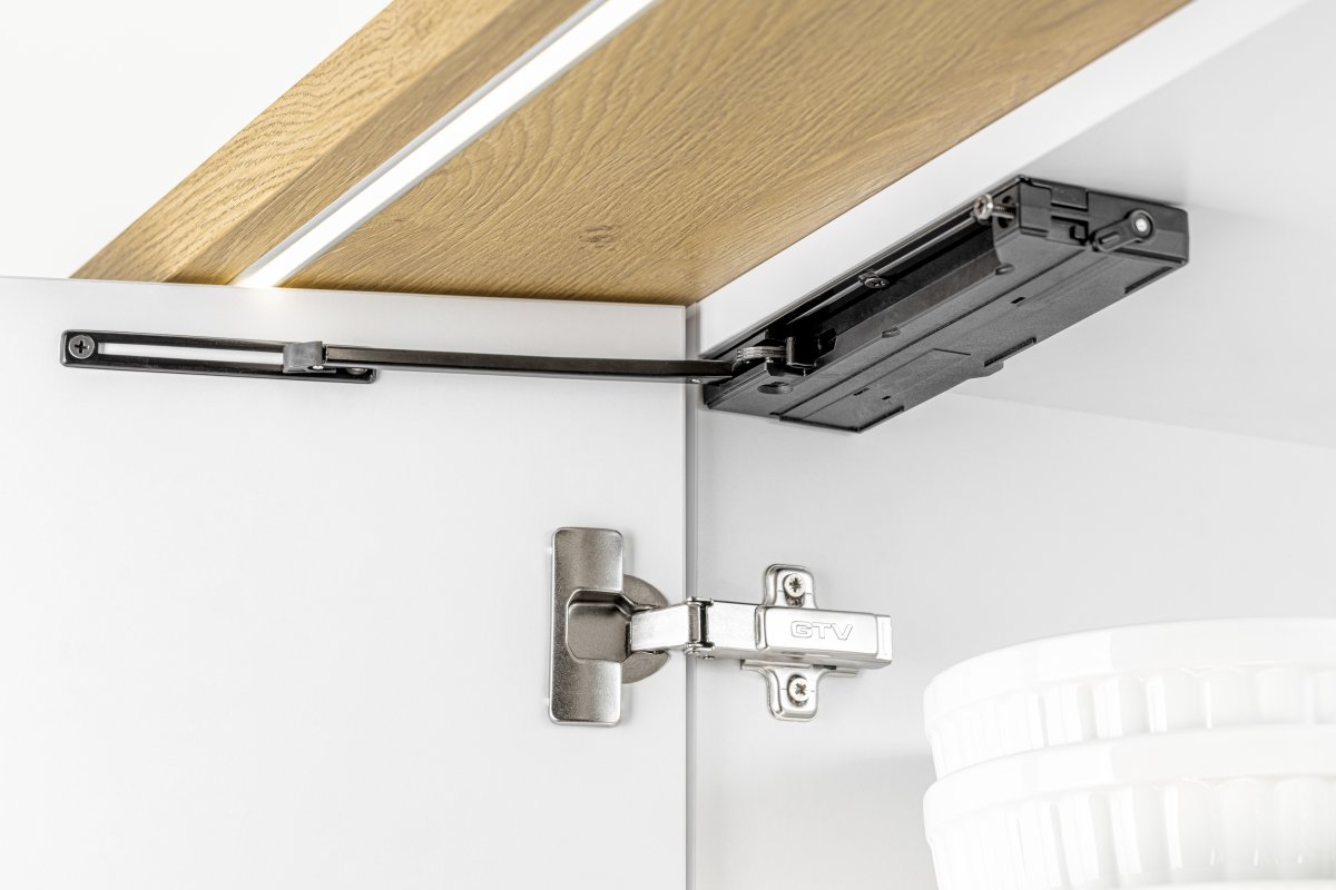 Soft Move – это инновационное сочетание механизмов плавного закрывания (soft close) и открывания нажатием на фасад (push to open). Система будет полезной в классических навесных шкафах, особенно рекомендована для кухни, где комфорт и эргономика должны быть на первом месте. Для Soft Move не нужны ручки, поэтому это отличное решение для минималистов, ценящих экономное пространство. Сборка и использование очень просты.