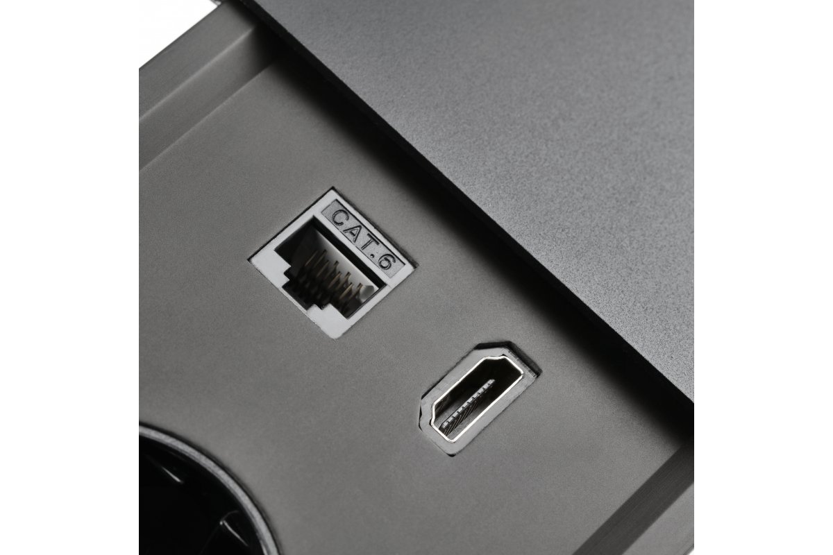 PRESTINO zapustený predlžovací kábel pre stolný počítač, 2x zásuvka schuko, USB A+C, RJ45, HDMI, kábel 1,5m, čierna