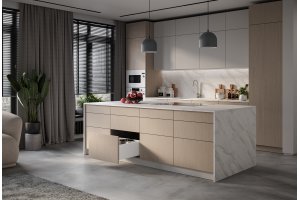 Zásuvka Axis Pro Push to Open má vysokú odolnosť certifikovanú pre 60 000 cyklov. Poskytuje úplné predĺženie v dĺžkach od 300 do 550 mm a mechanizmus push to open so synchronizáciou otvárania zaručuje hladké otvorenie zásuvky stlačením na akékoľvek miesto na prednej strane zásuvky. Vďaka 5 výškovým variantom sa dokonale zmestí do vašej kuchyne a bočná strana zásuvky so šírkou iba 13 mm umožňuje maximálne využitie vnútorného priestoru zásuvky. Zaťaženie zásuvky vám umožňuje umiestniť do nej až 40 kg rôznych výrobkov. Inštalácia zásuvky je jednoduchá vďaka pohodlnému nastaveniu na vnútornej strane zásuvky, nastaveniu náklonu a horizontálnemu nastaveniu v rozsahu +- 2 mm.