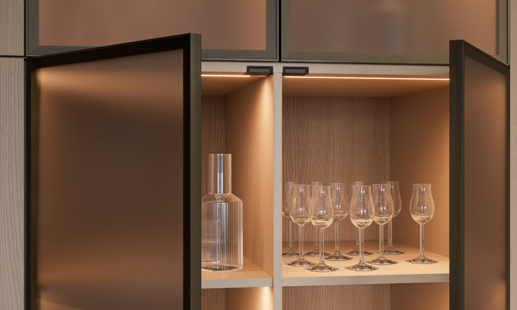 Елегантний корпус у чорному кольорі у формі магнітної касети дозволяє непомітно приховати механізм. SKY — ідеальне рішення для шаф, гардеробних, кухонних і ванних меблів. Забезпечує зручність користування без видимих дротів і складних монтажів. Завдяки простому налаштуванню можна вільно поєднувати вимикачі зі світильниками та світлодіодними стрічками. Вимикачі гармонійно інтегруються в поверхню меблів, не займають місця й залишаються майже непомітними — помітний лише результат: ідеально підібране світло.