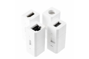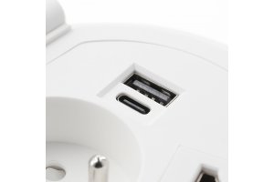 Меблева розетка CHARGER PLUS, Ø80 мм, 1хSHUKO, USB A+C, в комплекті три замінні модулі (USB-A, HDMI, RJ45), кабель 1,5 м, білий